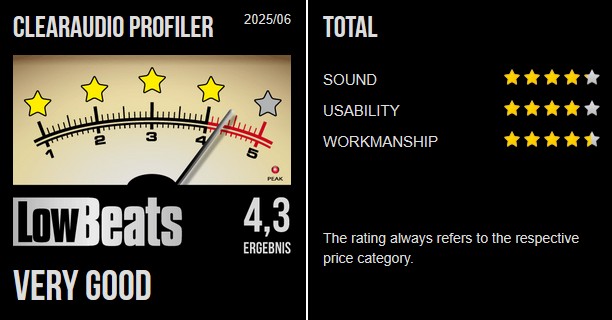 This is why the tonearm also plays a decisive role. If its bearings have too much play or too much friction against the movement, the image becomes blurred and the dynamics are lost. Its dynamic mass (very light, light, medium, medium-heavy, heavy) must harmonize with the so-called compliance of the stylus. Since most cartridges today are designed for medium to medium-heavy arms and the tonearms are usually assigned to these classes, the matter becomes somewhat easier. But if in doubt, always ask your specialist dealer. At the end of each test, we provide cartridge recommendations for each arm; one from the Clearaudio portfolio, one from the competition. Not mandatory, but useful.